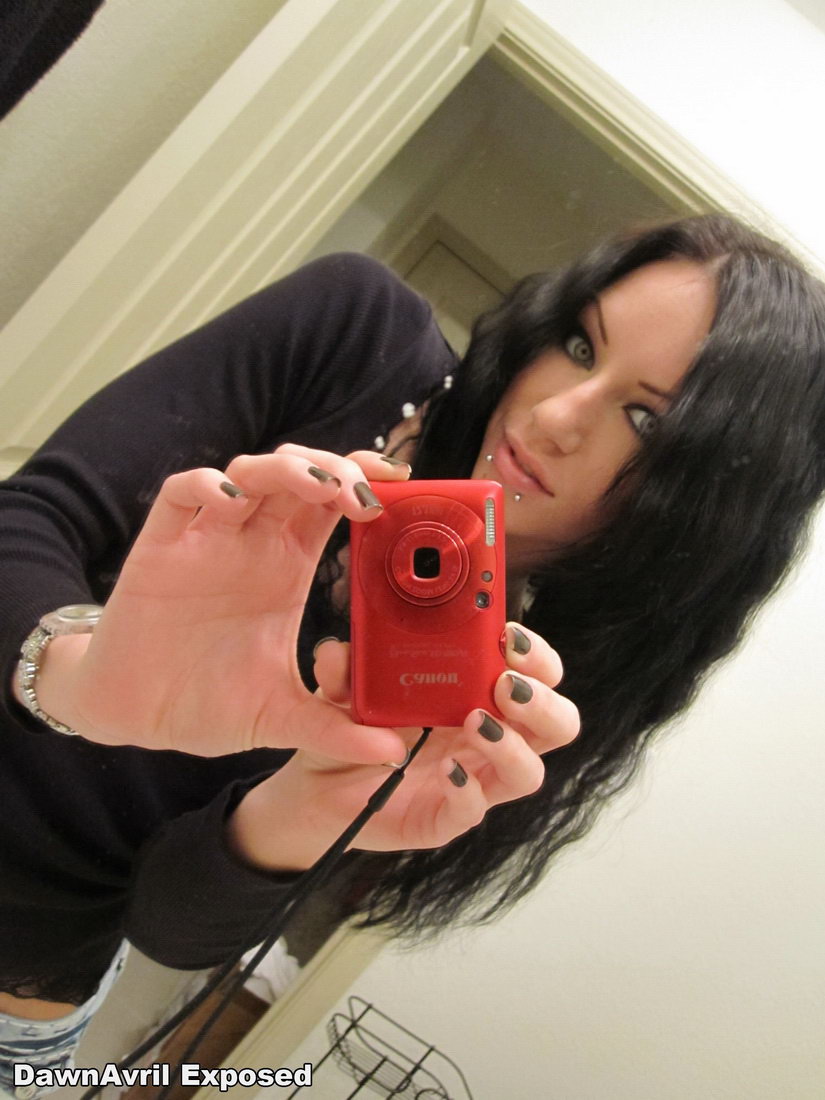Dawn Avril Exposed gets naked in front of mirrors to show her skinny body, big boobs and tight ass in self shot photos |